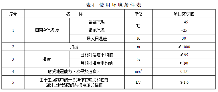 4使用環境條件表0.4kV低壓電纜分支箱使用環境條件見表4。特殊環境要求根據項目情況進行編制。