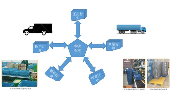 產品有400×300mm、600×400mm、800×600mm及其他尺寸等四個系列10多種規格。斜插物流箱在空箱的時候具有可互相插入堆放的特點,從而可以節省70%的堆放空間。特別是在空箱擺放、運輸回程中可大大減少占地空間,節約管理成本。與多種物流容器和工位器具配合,用于各類倉庫、生產現場等多種場合。和1208型歐洲標準托盤配合,可實現機械化搬運